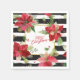 Merry Christmas Poinsettias, Black Stripe Napkins