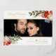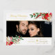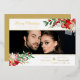 Merry Christmas Poinsettias Garland Photo Wedding Couple Metallic Foil Save the Date Card with Envelope.