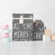 Cute polar bears on a winter grey background with stars and Merry Christmas text.
