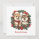 Merry Christmas Pomeranian Dogs Mistletoe Wreath Holiday Card