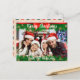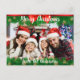 Green garland with gold snowflakes and a red ribbon frame the top and bottom of your family photo. Customise with your family name, and your personal greeting on the back.