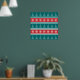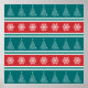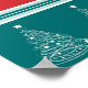Merry Christmas illustration with Christmas tree and snowflakes decoration on red, white, blue and turquoise striped background