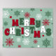 Merry Christmas colourful text design with snowflakes decoration on green background