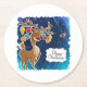 Merry Christmas Prancing Reindeer Round Paper Coaster
