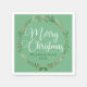 Merry Christmas Pretty Green Wreath Custom Party Napkin