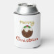 'Merry Christmas' in faux gold colour and red script with illustration of a Christmas pudding with holly centre. Design on front, back and bottom.