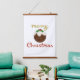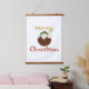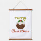 'Merry Christmas' in faux gold colour and red script with illustration of a Christmas pudding with holly centre.