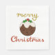 'Merry Christmas' in faux gold colour and red script with illustration of a Christmas pudding with holly centre.
