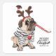 Merry Christmas | Pug Reindeer Square Sticker