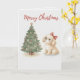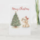 Merry Christmas Puppy Card Fluffy Dog with Tree