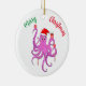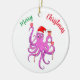 Merry Christmas Purple Santa Octopus Ceramic Tree Decoration