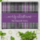 Merry Christmas purple tartan plaid script name kitchen towel. Personalize with text..