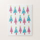 Merry Christmas Puzzle Christmas Trees Pink Blue