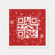 Red and white QR Code reading Merry Christmas on a red background with scattered snowflakes.