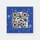 QR Code reading Merry Christmas on a blue background with scattered snowflakes.
