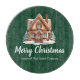 This cute custom green realtor Merry Christmas cutting board has your personalised realty company name and holiday message in chic green typography along with a beautiful image of a house in the winter surrounded by pine trees. Professional holiday gift for a real estate business.