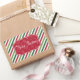 Merry Christmas illustration with text and snowflakes design on red, white and green striped background