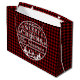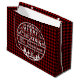 Add rustic holiday charm to your gift giving with this personalised buffalo plaid Christmas gift bag from Plaid Perfection. Featuring a classic red and black plaid background, the design is accented with a festive white circular “Merry Christmas” emblem surrounded by snowflakes, reindeer, and trees. Customise with your family name or recipient’s name for a truly one-of-a-kind presentation. Perfect for wrapping Christmas gifts, holiday party favours, or seasonal treats, this sturdy and glossy gift bag makes every package feel extra special.