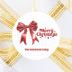 A white background, red text and bow. Merry Christmas is written with a retro style font. Personalise and add a year and your family name.