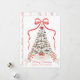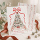 Send warm holiday greetings with this personalised Grandmillenial Christmas card featuring an elegant watercolor Christmas tree adorned with red and silver ornaments, delicate stars, and festive ribbon accents. The design showcases a classic winter palette of soft ivory, sage green, and red tones, topped with a bow for a timeless, romantic touch. The bottom banner includes customisable text, perfect for adding your names, wedding year, or special holiday message, making it an ideal choice for newlywed Christmas cards, family holiday cards, or personalised seasonal greetings. This luxury Christmas card design blends modern minimalism with traditional holiday charm, creating a keepsake your loved ones will treasure.