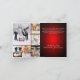 A red gradient background, white text, a red bow. Text and photo on the front. Merry Christmas is written with a retro style font.