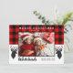 Merry Christmas Red Buffalo Plaid Deer Photo Holiday Card