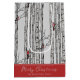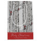 This modern winter and holiday season "Merry Christmas" personalised gift bag features hand-drawn birch trees with red Cardinal birds perched on branches in black ink, against an elegant soft grey background. All text is editable. Personalise with your favourite Holiday greeting and your family name.