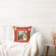 This holiday photo throw pillow features a classic message with a fun Christmas tree shape, gingerbread house and present on a beautiful vivid red background, radiant and full of energy. With a photo on the front surrounded by snowflakes (removable), it's a great way to send Christmas cheer to friends and family. The back is a vivid red dotted with snowflakes (removable), tree, gingerbread house and presents.