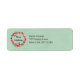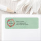 Address labels with a pretty christmas wreath created with watercolors. Red flowers and green leaves in a circular shape with Merry Christmas written inside in a trendy modern handwritten font. Set on a retro green background with a light linen faux texture.