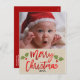 Merry Christmas Red Foil Modern Script Photo Holiday Postcard