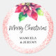 Merry Christmas Red Glitter Poinsettia Classic Round Sticker