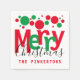 Deck the halls this holiday season and your dining room too with these festive paper napkins. This design features red and green polka dots with a modern script typography which reads "Merry Christmas" and your family name to personalise. Designed by world renowned artist ©Tim Coffey.