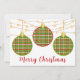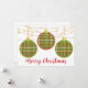 This design features three large Christmas ornaments with a red, green, and white plaid pattern, each adorned with a gold topper, hanging against a backdrop of twinkling lights. Below, the phrase "Merry Christmas" is written in elegant red script. On the back, a customisable message reads "May the Spirit of the Season Be with You," adding a heartfelt touch. Perfect for those who love classic holiday themes with a cosy, festive vibe, this design brings warmth and cheer to the Christmas season. © Rosemarie Guieb