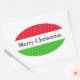 MERRY CHRISTMAS Red Green White Dots Stripes Oval Sticker
