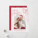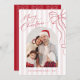 Celebrate the season with this elegant Merry Christmas card featuring a whimsical hand-drawn bow and classic red striped background. The front includes your favourite family photo and a festive script, while the back offers space for a personalised message of love and holiday wishes. A timeless yet playful design perfect for sending joy this Christmas.