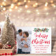 merry christmas red handwriting newlyweds photo Postcard