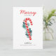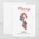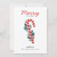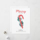 "Merry Christmas" winter holiday card with red lollipop candy and blue floral.