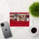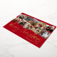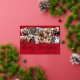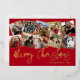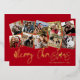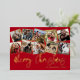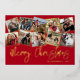 Elegant christmas holiday gold foil card featuring a classic red background, a 10 square photo collage capturing memories throughout the year, the seasons greetings 'merry christmas', family name, and the year.