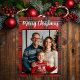 merry Christmas red plaid custom family photo Holiday Card