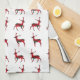 Merry Christmas Red Plaid Tartan Reindeer Pattern Tea Towel