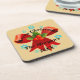 Merry Christmas Red Ribbon Holly Leaf Coaster