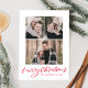 Merry Christmas Red Script 3 Photo Collage Holiday Card