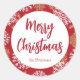 This festive sticker label features a red, white and gold toned snowflake design with the words Merry Christmas and your own custom name or text below. Perfect for your Holiday gift giving needs!