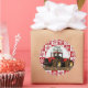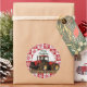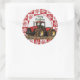 Christmas down on the farm, this festive holiday sticker features a red tractor standing in corn stalks. This design is the perfect finishing touch to wrapping gifts or sending Christmas letters. The red and white snowflake background brings the design a traditional Christmas feel.