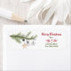 This stylish Christmas return address label has a watercolor art illustration of an evergreen tree branch decorated with cute holiday ornaments and festive stars. "Merry Christmas from" is in red handwritten script typography above your personalised name and address. Perfect for all your winter mail, cards, and packages, family and friends will love this casual, trendy return address label.