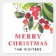 Merry Christmas Red Watercolor Greenery Monogram Square Sticker