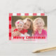 Merry Christmas Red White Buffalo Check Family Holiday Postcard