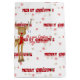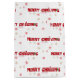Merry Christmas reflection on white with snowflakes and green pine tree.