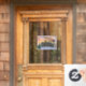 Santa and his reindeer fly over the treetops as another reindeer stands by.