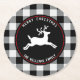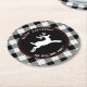 Merry Christmas Reindeer Black White Buffalo Check Round Paper Coaster
